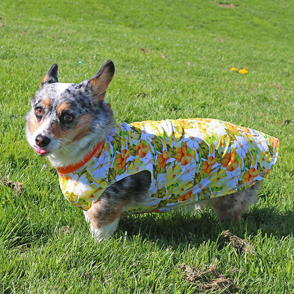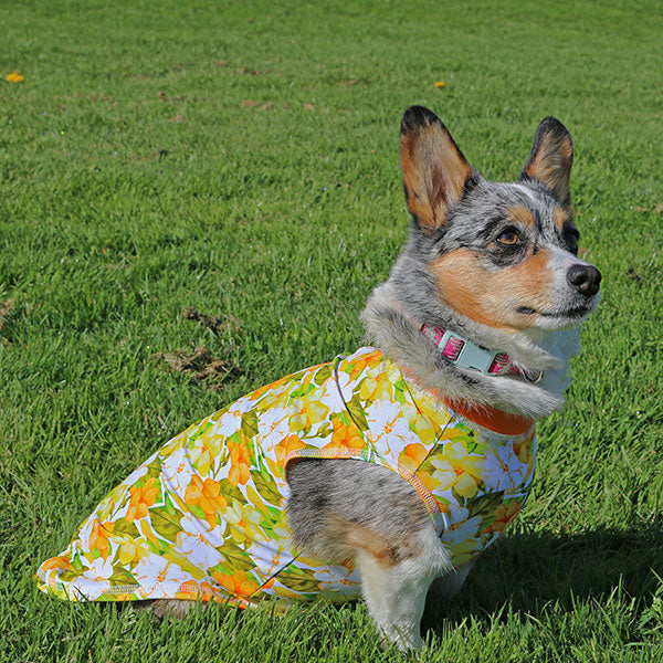 Bright blooms, breezy vibes! This Cooling Sun Tee with UPF 50+ blocks harmful rays while keeping pups cool and comfy. Made from recycled bottles with 4-way stretch, it’s gentle on sensitive skin, allergy-friendly, and perfect for post-surgery wear. Handmade in Seattle with eco-style that turns walks into runway moments.