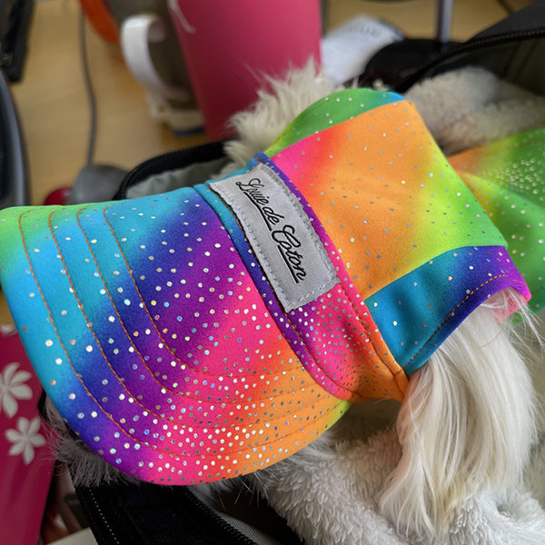 Cooling Dog Hat with UPF50+ - Black Light Activator - Rainbow Sparkle
