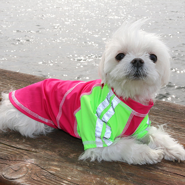 When the sun is out, our pampered pooches are having fun outdoors too. Despite all their fur, dogs can develop skin cancers, so limiting sun exposure is important. Our fashionable relaxed fit silk weight Cooling Sun Tee T-shirts block sun's harmful ultraviolet rays with a rating of UPF 50+, reducing exposure by 98%.