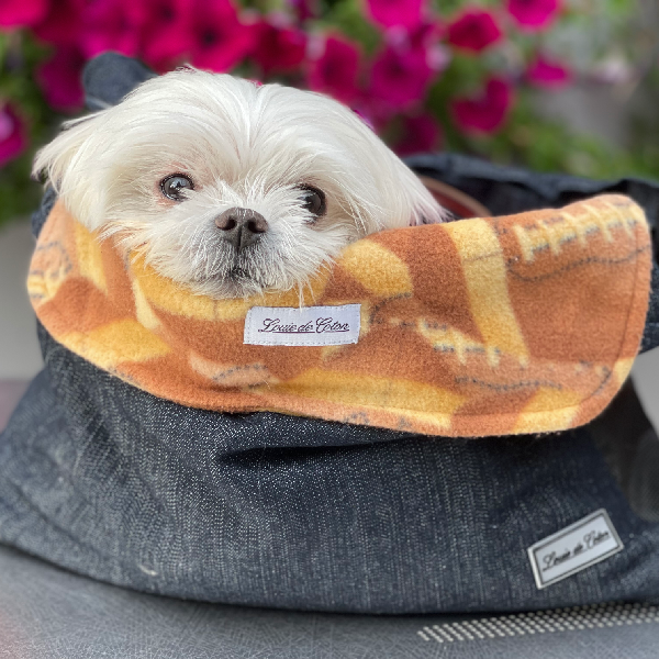 Accessorize you pooch bag with Louie de Coton limited-edition interchangeable and removable stylish soft anti-pill mid-weight fleece bag liner with USA made satin logo in the front. Treat them to warmth and comfort while you are running errands. The liner fits perfectly in the pooch sling/messenger bag and stays in place securely with USA made Velcro®. There are two leash holes in the liner to allow the bag's removable leash attachments to go through. The bag liner can easily be removed and used as a cozy blanket. Wrap your pooch in the blanket and carry them from the bag to the car in style. It also provides a familiar surface for naps, travel or vet visits.