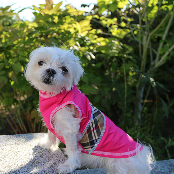 When the sun is out, our pampered pooches are having fun outdoors too. Despite all their fur, dogs can develop skin cancers, so limiting sun exposure is important. Our fashionable fitted light weight Cooling Sun Tee T-shirts block sun's harmful ultraviolet rays with a rating of UPF 50+, reducing exposure by 98%. The fitted style has calming effect on most dogs.