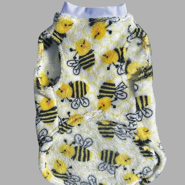 Super cozy plush fleece shirt with adorable bees printed all over. Your pup not only looks super cute but will be very comfy. This shirt is so soft that your pup doesn't want to take it off.